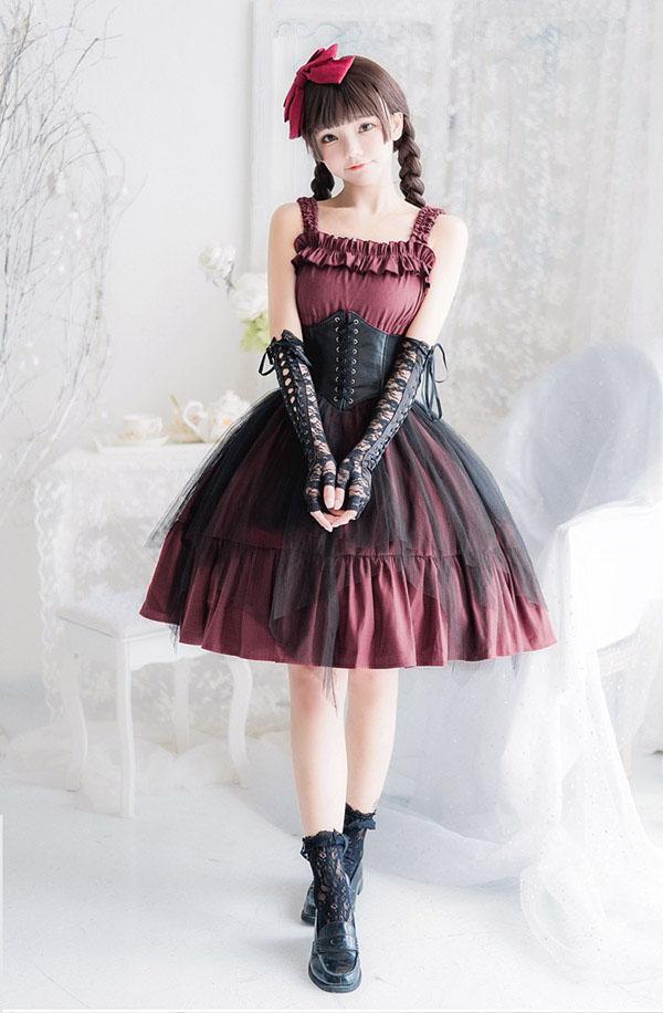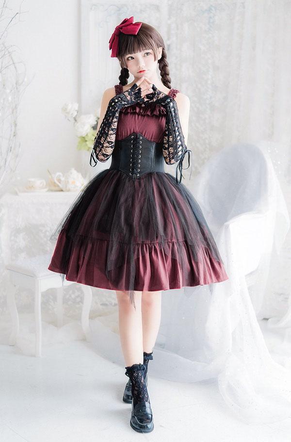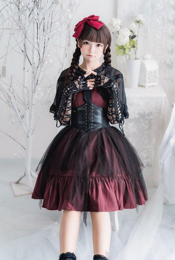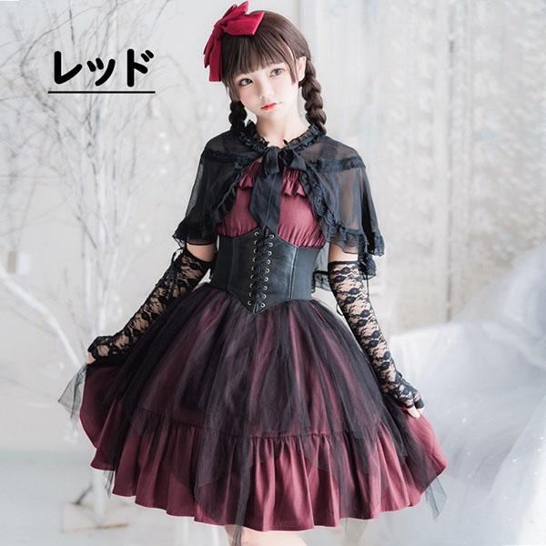 ロリータ ワンピース レディース Lolita ゴスロリ ゴシック パンク 服 甘ロリ ハロウィン ファッション レッド ブラック ステージ 衣装 コスプレ衣装