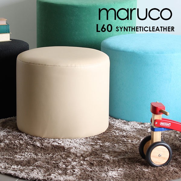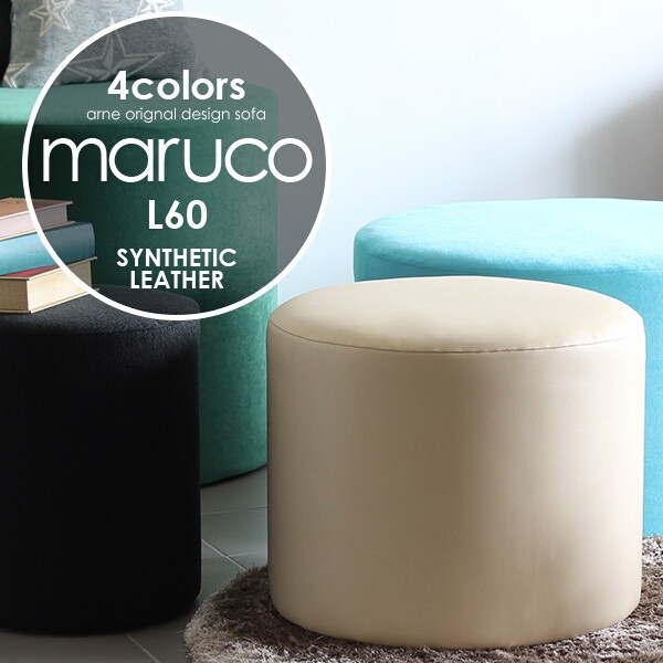 スツール オットマン レザー 合皮 白 椅子 チェア 低い 丸 北欧 アンティーク おしゃれ 丸椅子 丸スツール ドレッサー maruco L60 □