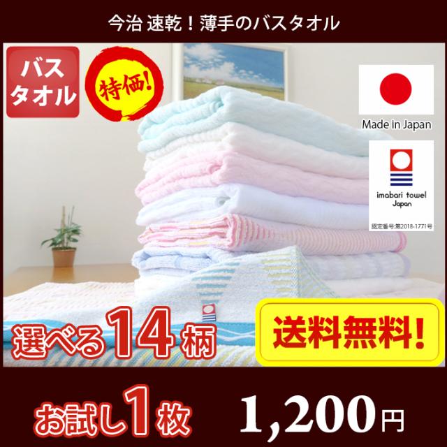 バスタオル 日本製 今治 乾きが早い薄手のバスタオル 【メール便送料無料】【圧縮パック】