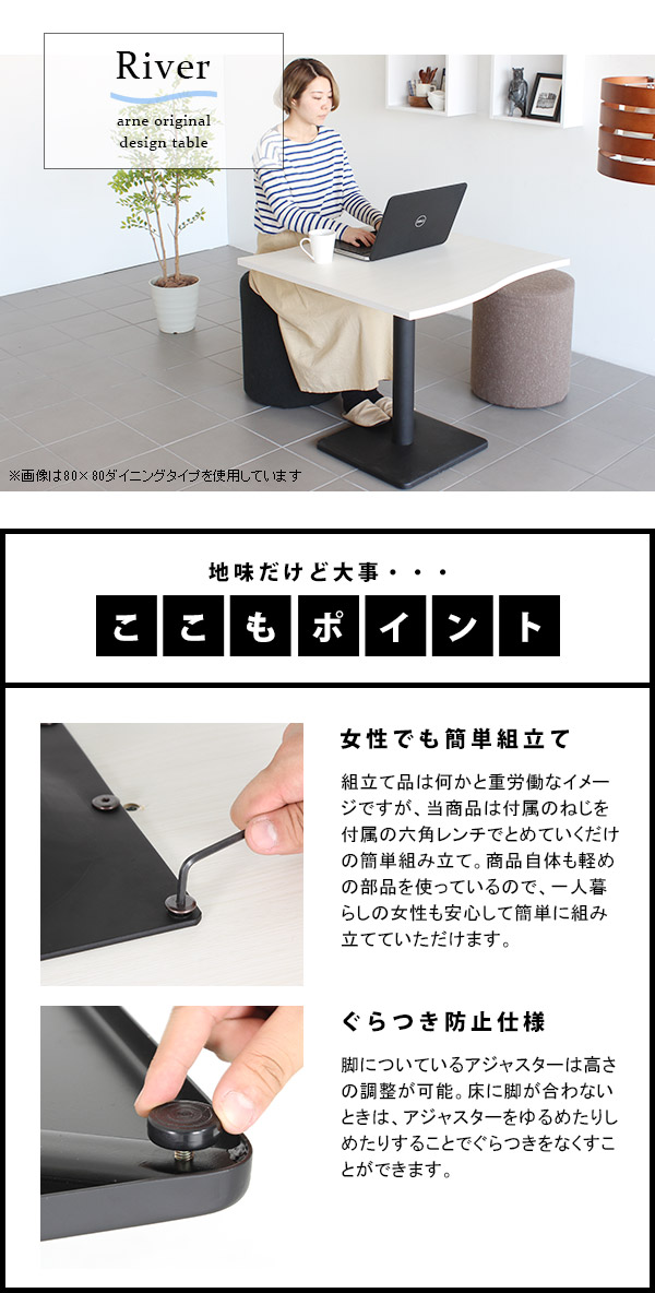 カフェテーブル おしゃれ 木製 ダイニングテーブル 単品 幅75 高さ70 River7570 Etype D脚 River7570 Etype-D脚 □
