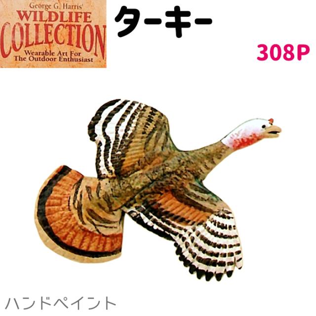 ピンバッジ ターキー 308P ハンドペイント 4.3×3.5cm シチメンチョウ 七面鳥 ピンズ バッチ スズ ピューター メンズ スーツ 襟 おしゃれ かわいい 動物 アニマル 鳥 可愛い ブローチ バッジ バッヂ キャッチ 留め具 金具 メール便発送可 ポイント消化