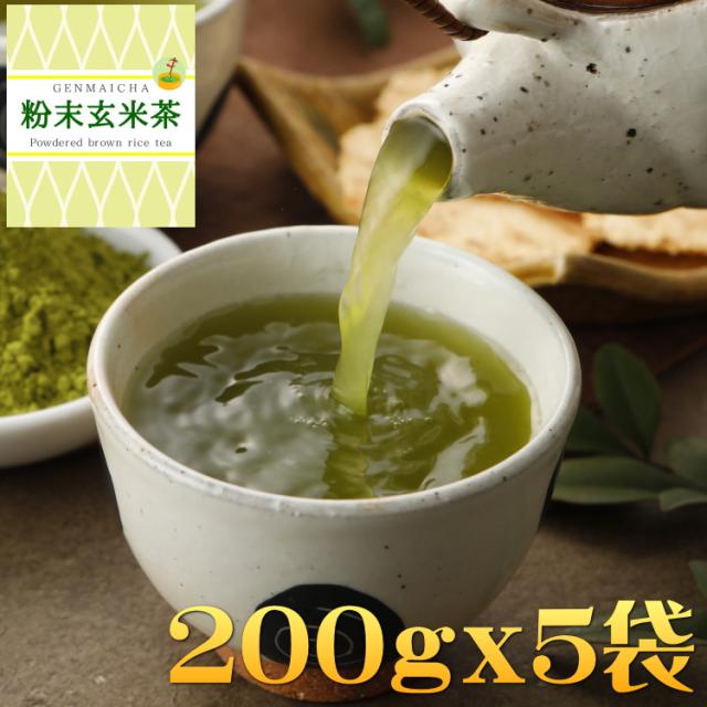 粉末玄米茶 宇治抹茶入 国内産 1000g (200gx5) お茶 緑茶 粉末緑茶 抹茶入玄米茶 宇治抹茶 パウダー茶 粉茶 粉末 業務用 【お湯でも水でも溶けやすいお茶】 送料無料 お茶のカクト