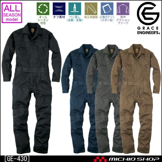 オールシーズン対応 つなぎ作業服 グレースエンジニア GE-430 メランジ調ワンプリーツ長袖ツナギ 大きいサイズ5L