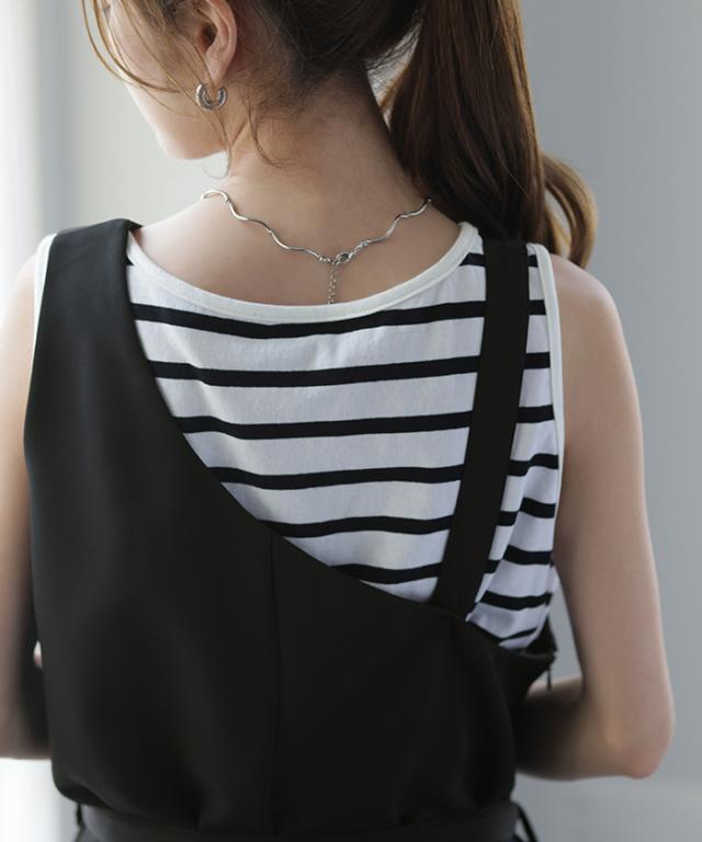 ややストレッチがある滑らか素材のワンショルダーのサロペットです。