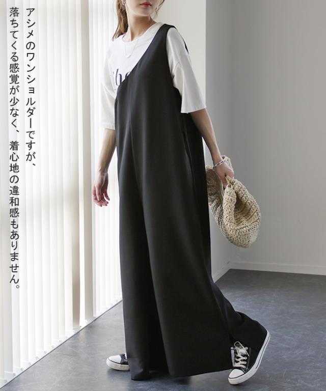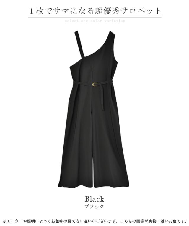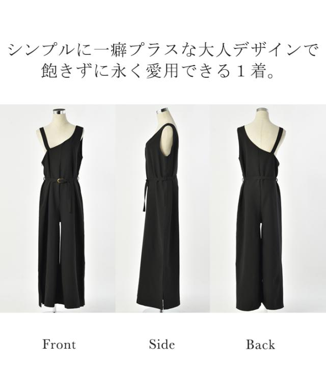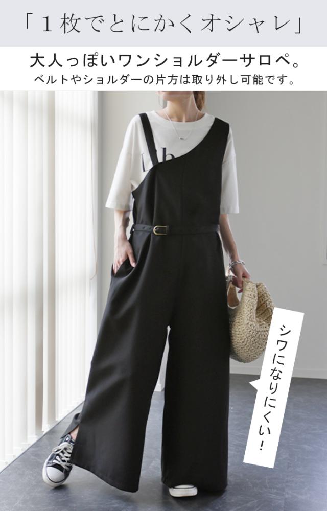 オールインワン レディース サロペット 体型カバー シンプル 無地 ワンショルダー ワンショル 大きいサイズ フリーサイズ サロペ コンビネゾン つなぎ ワイドパンツ パンツ きれいめ パーティー 肩出し 冬 秋 秋新作
