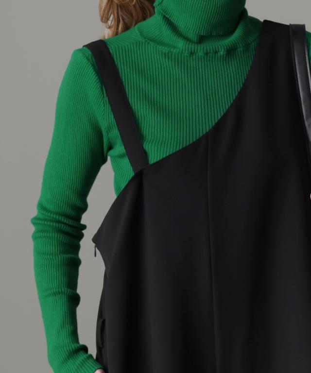 ややストレッチがある滑らか素材のワンショルダーのサロペットです。