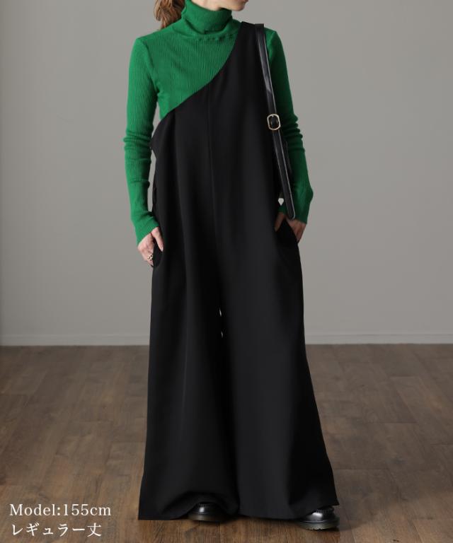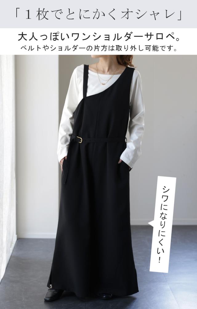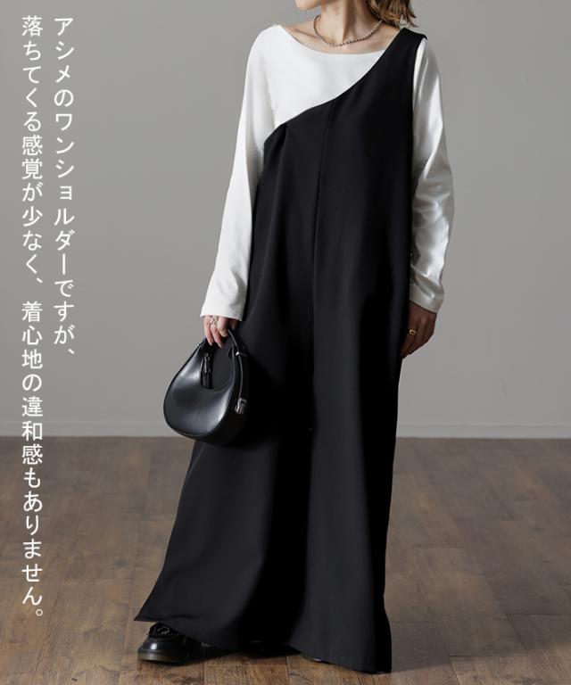 オールインワン レディース サロペット 体型カバー シンプル 無地 ワンショルダー ワンショル 大きいサイズ フリーサイズ サロペ コンビネゾン つなぎ ワイドパンツ パンツ きれいめ パーティー 肩出し 冬 秋 秋新作