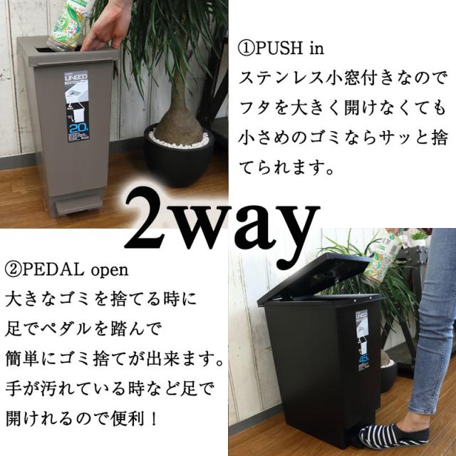 分別 ゴミ箱 プッシュ&ペダル ダストボックス UNEED ユニード 30L ごみ箱 オシャレ 2way ふた付き シンプル 新生活 一人暮らし 使いやすい
