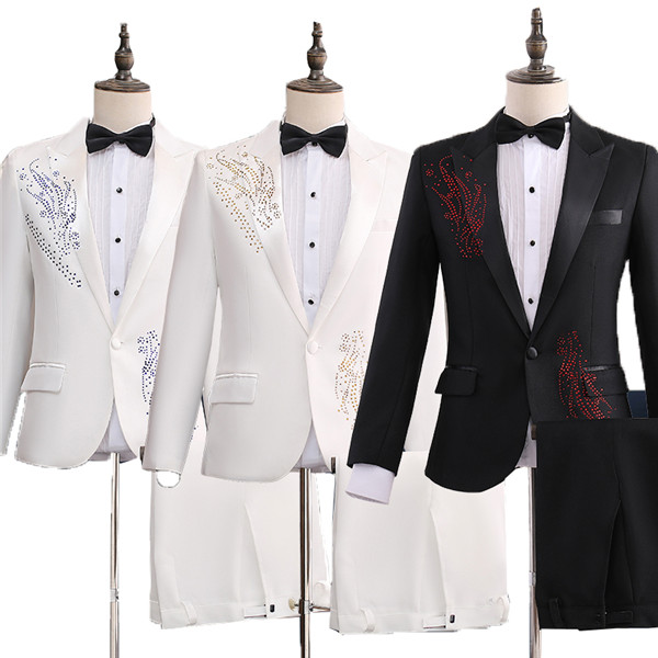 【サイズ有S/M/L/XL/2XL】ステージ衣装 カラオケ 大会 新作 男性用スーツ キラキラ 演出服 王子様 貴公子 大人 演奏会 メンズ スーツ 大きいサイズ 舞台衣装 演劇オペラ声楽 貴族服装 コスプレ衣装 クリスマス仮装 ハロウィン衣装 ブラック ストーン ホワイトdg395d3d3x3