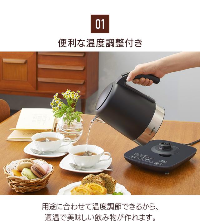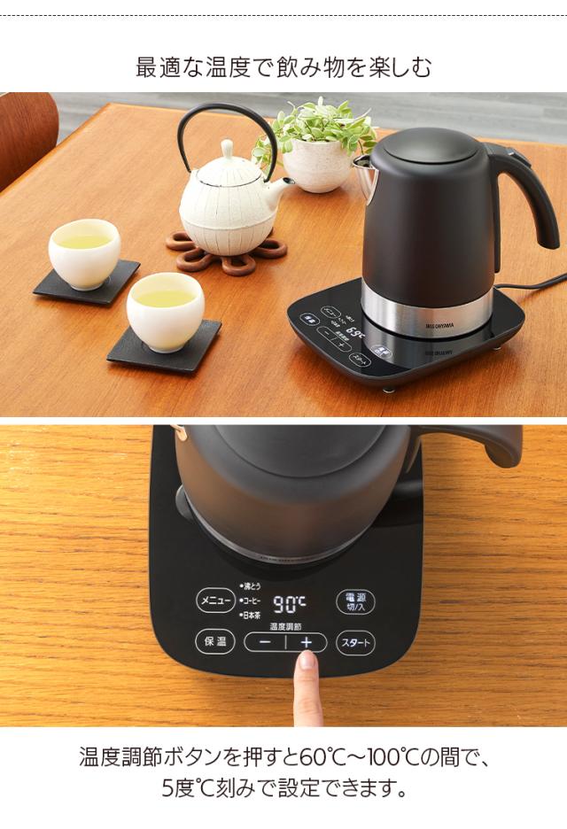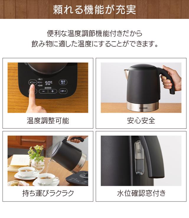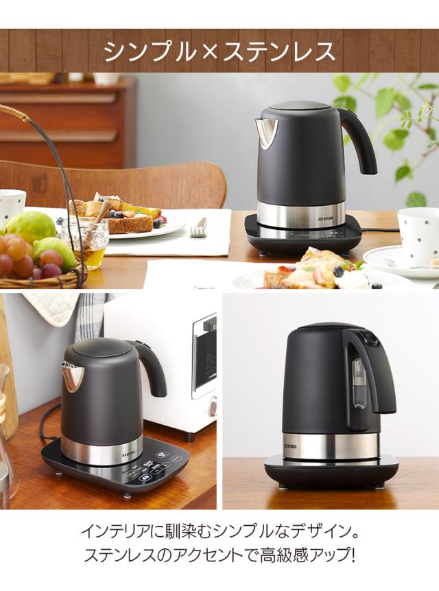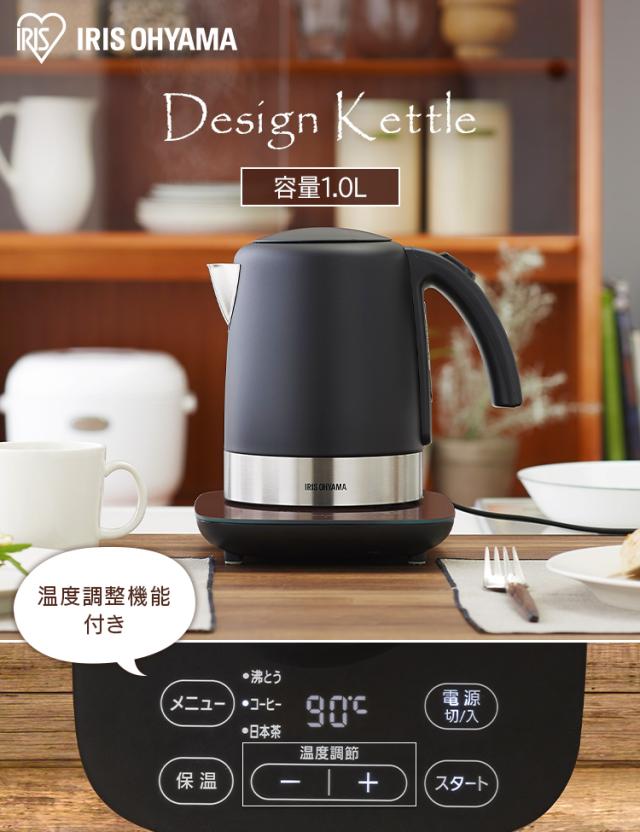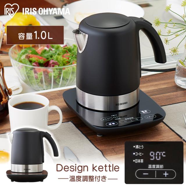 電気ケトル 1L 温度調節付 ケトル 電気 湯沸かし 湯沸かしケトル 湯沸かしポット ポット お湯 1000ml 空焚き防止 安全 安心 おしゃれ シンプル ステンレス デザインケトル 新品 本体 ブラック IKE-D1000T-B アイリスオーヤマ 送料無料 母の日 安心延長保証対象