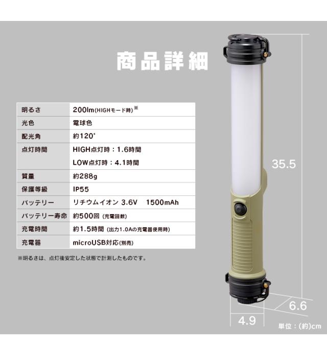 LEDスティックライト充電式200lm LLS-200SB アイリスオーヤマ
