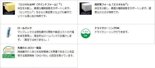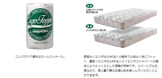 ●エルゴ・トッパーはエリオセルMF・エリオセル・エリオファイバーの三層構造でマニフレックスを代表するコア素材を贅沢に使用しました。