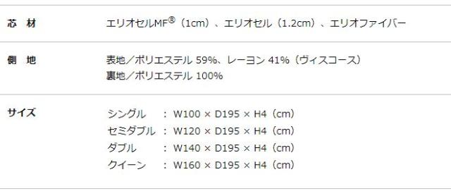 ・シングルサイズ:W100×D195×H4cm