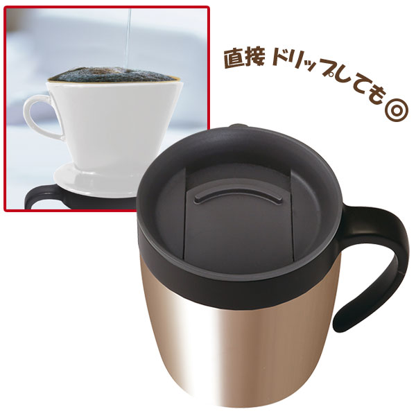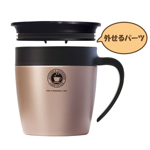 保冷 保温 真空断熱マグカップ 330ml シャンパンゴールド A3252 | マグ カップ フタ付き オフィス 330 コーヒー 紅茶 ステンレス 蓋付き ハンドル ドリップ