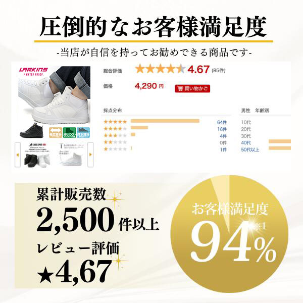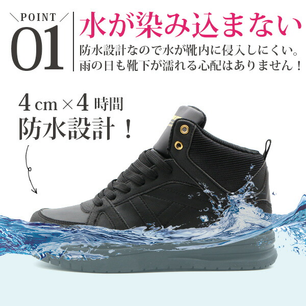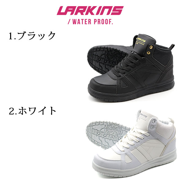 スニーカー レディース 靴 女性 ハイカット 黒 ブラック 白 ホワイト 防水 雨 雨の日 滑らない 幅広 ワイズ 3E 相当 クッション 取り外せるインソール おしゃれ かわいい 通勤 仕事 通学 学校 雪 冬 シンプル 無地 カジュアル きれいめ ラーキンス LARKINS L-7590