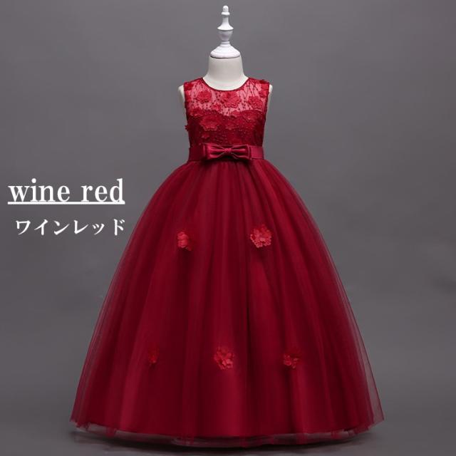 子供ワンピース ピアノ発表会 子供ドレス フラワーガール こども 発表会 ドレス ロング 女の子 キッズドレス 160 170 ピンク ワインレッド