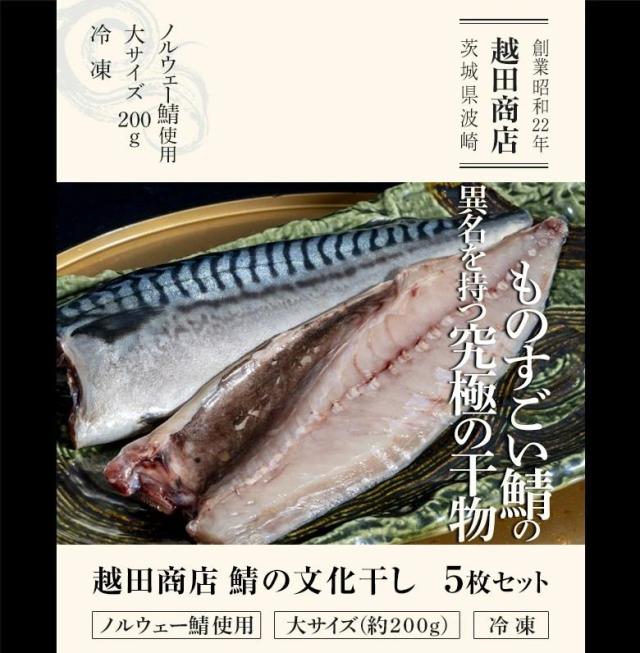 「越田商店 鯖の文化干し(ノルウェー鯖使用)」大サイズ(約200g)5枚セット ※冷凍