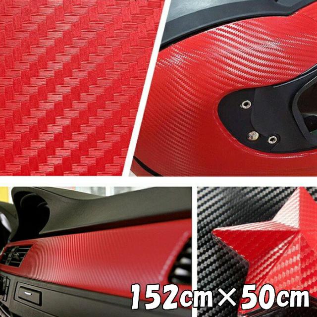 3Dカーボンシート 152cm×50cm レッド 赤 カーラッピングシートフィルム 耐熱耐水曲面対応裏溝付 カッティングシート 自動車内装外装