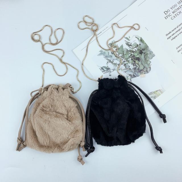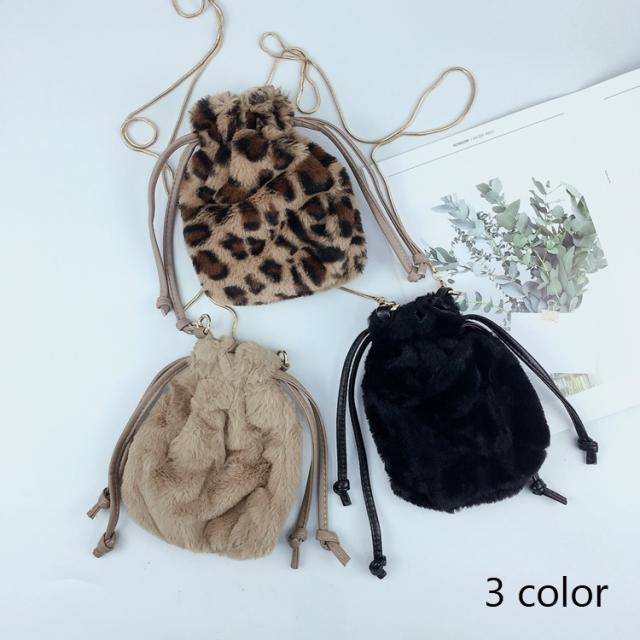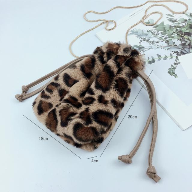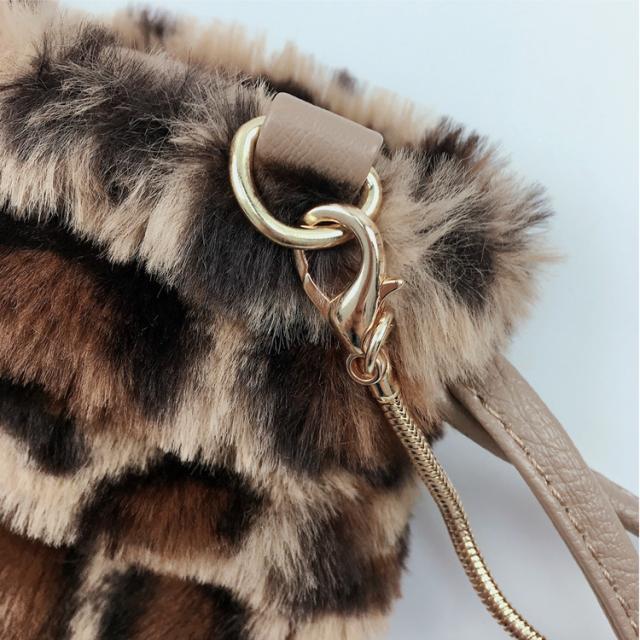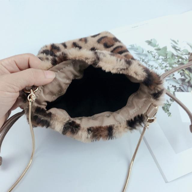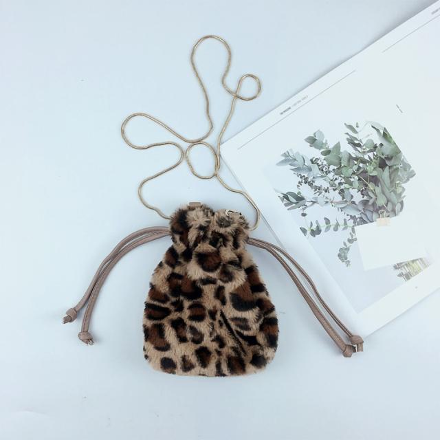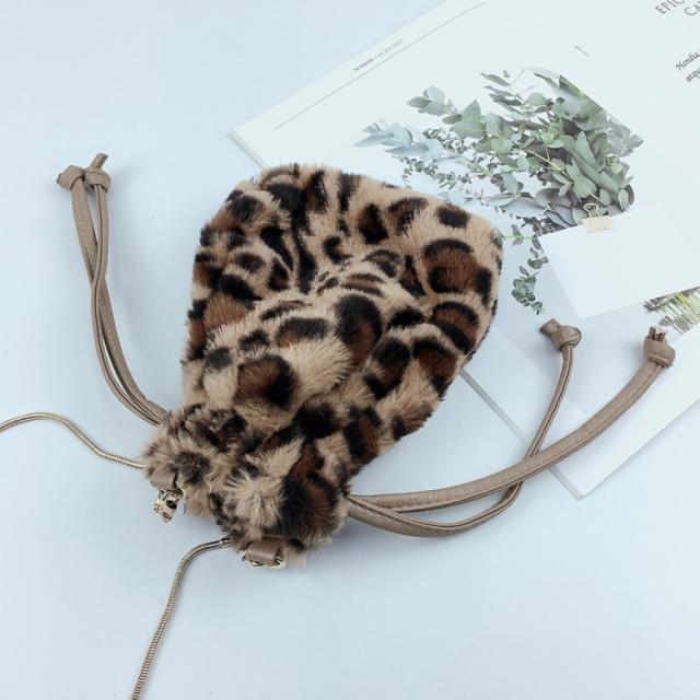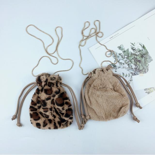 ファー 巾着ショルダーバッグ レオパード エコファー フェイクファー ヒョウ柄 レオパード 婦人バッグ メール便送料無料