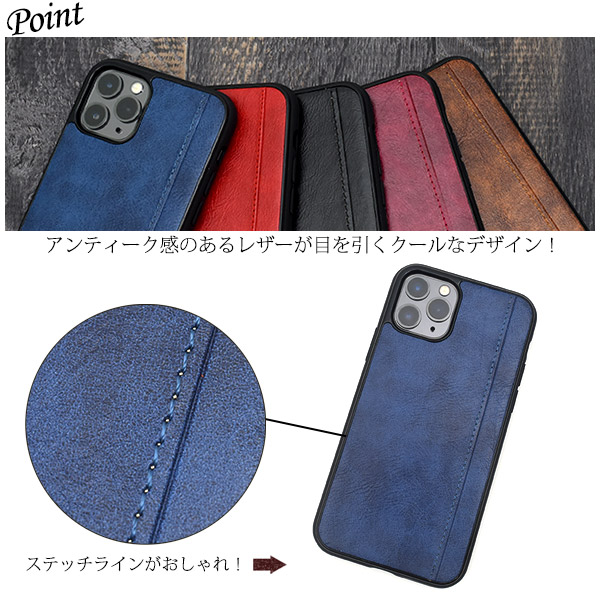 iPhone 11 Pro用 ステッチラインレザーデザインケース