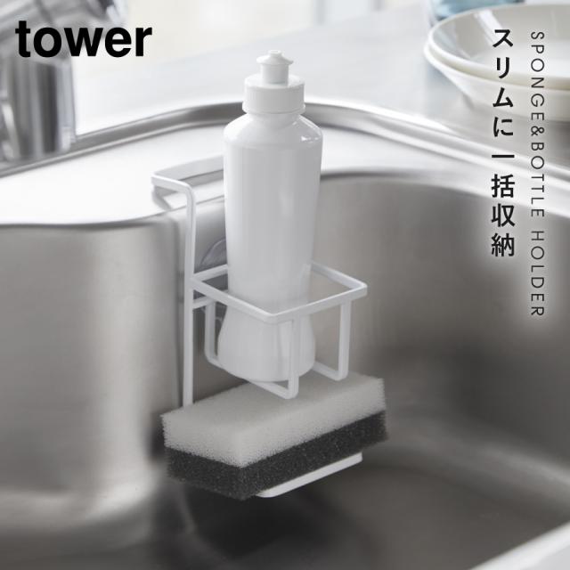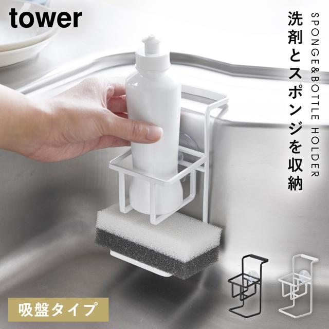吸盤スポンジ&ボトルホルダー タワー 山崎実業 tower スポンジラック 吸盤 スポンジホルダー 浮かせる シンク キッチン おしゃれ モノトーン ホワイト ブラック 4774 4775