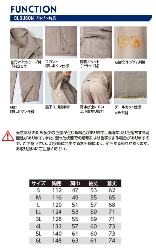 作業服 防護服 難燃ブルゾン ボタンタイプ 352 旭蝶繊維