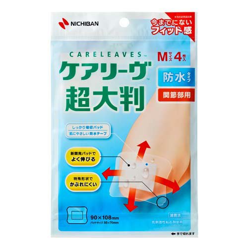 ケアリーヴ超大判 防水タイプ 関節部用 Mサイズ(4枚入)[絆創膏 大きいサイズ]