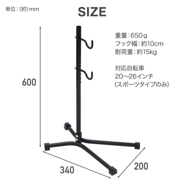 耐荷重約15kgまで使用可能で、20〜26インチの自転車に対応です。