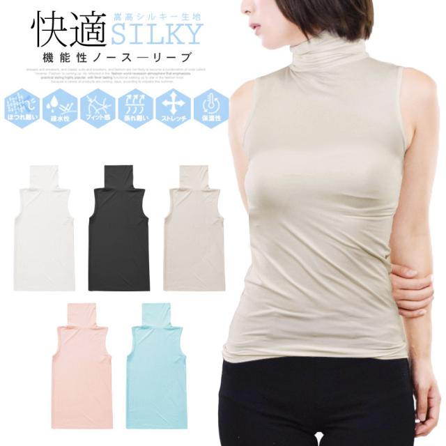 ノースリーブ レディース ハイネック インナー トップス 下着 タイト 細身 重ね着 薄手 透け感 軽量 シルキー 機能性 快適 ストレッチ ムレにくい 保温性 通気性 伸縮性 吸水速乾性 ほつれ難い 響かない ストレスフリー 送料無料 (psy027)