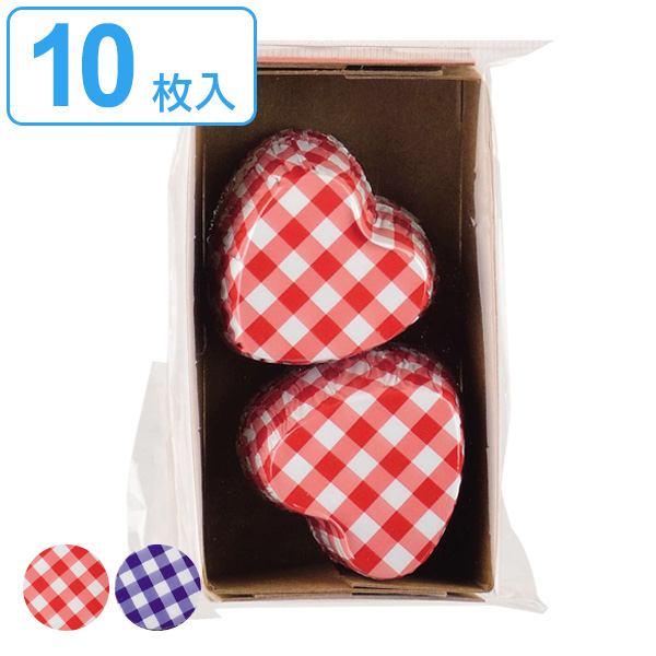 アルミカップ チョコモールド ハート型 チェック柄 10枚入り ベイクベイク 日本製 ( チョコ型 使い捨て アルミ カップ チョコカップ チョコ チョコレート 型 手作り 製菓道具 アルミ 可愛い おしゃれ 製菓 )