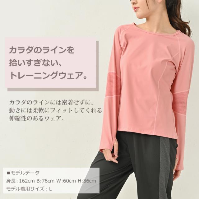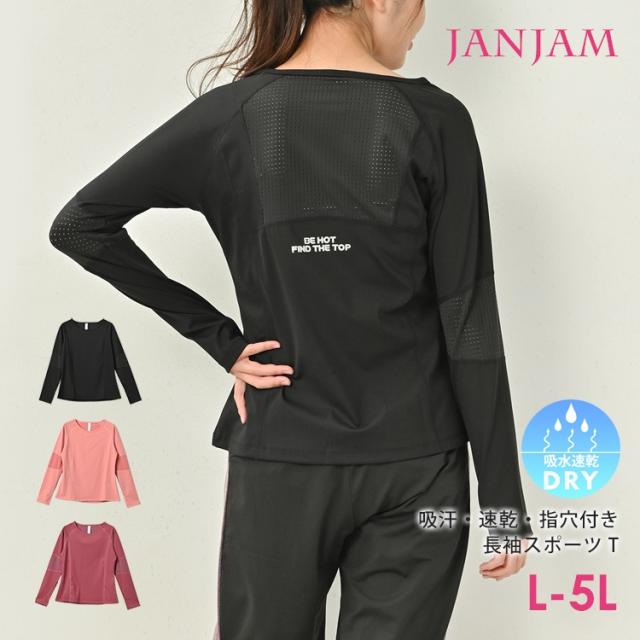 大きいサイズ レディース カットソー 長袖 メッシュ切り替え 指穴 スポーツウェア ジムウェア フィットネス トップス L/LL/3L/4L/5L ゆったりサイズ ぽっちゃり女子 プラスサイズ メール便対応