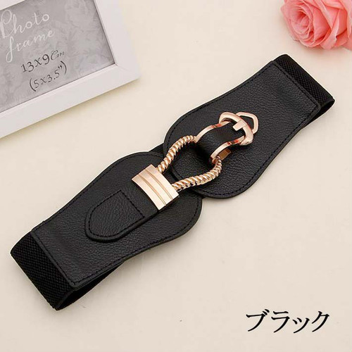 LAZA 【3色】(幅広 ゴムベルト レディース)ゴールド バックル 金 エレガント コルセットベルト サッシュベルト シャープ 上品