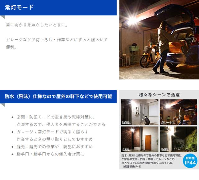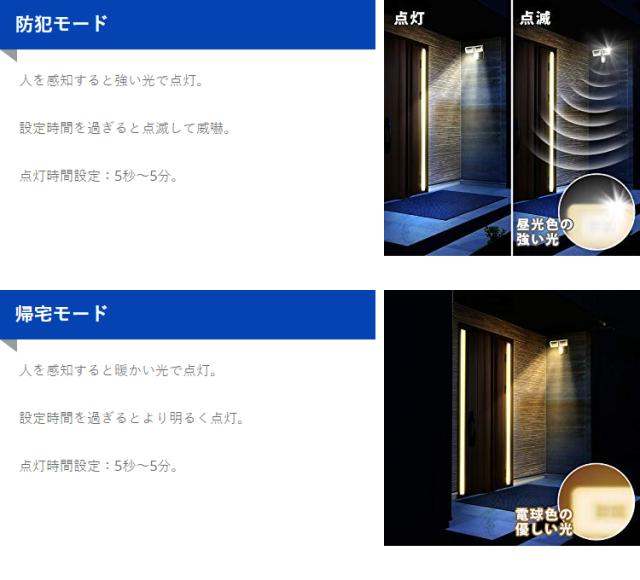 ・点灯モード切替:防犯モード/常灯モード/帰宅モード