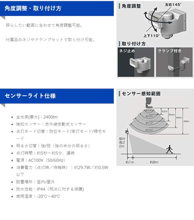 センサーライト 屋外 LED 照明 庭 防犯 SLACTN240Y アイリスオーヤマ 明るい 電気 防犯 センサー 防犯センサーライト パールホワイト コンセント式 送料無料