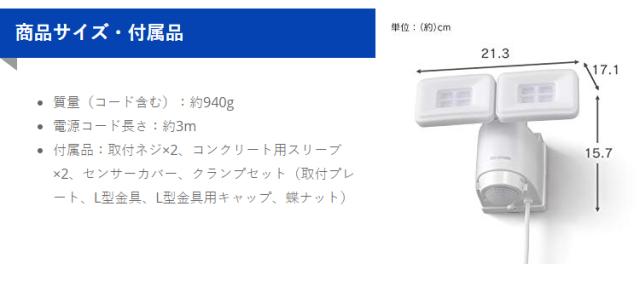 ・センサー検知角度:約140°(距離2mでの感知角度)