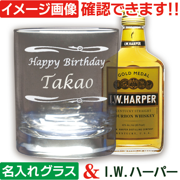 ウイスキー セット 名入れグラス & ウイスキー I.W.ハーパー 200ml 1本付 (IL) ウイスキーギフト 名前入り 誕生日 プレゼント 父 母 還暦 御祝 退職 祝い 名入れギフト おしゃれ IWハーパー ゴールドメダル バーボン オールドグラス