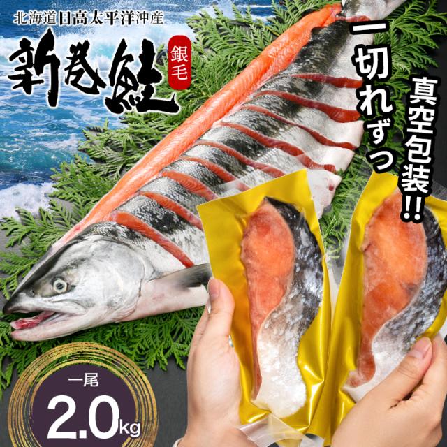 | 銀毛新巻鮭姿切身2.0kg(北海道日高太平洋沖産)(1切れ真空包装、姿戻し) |