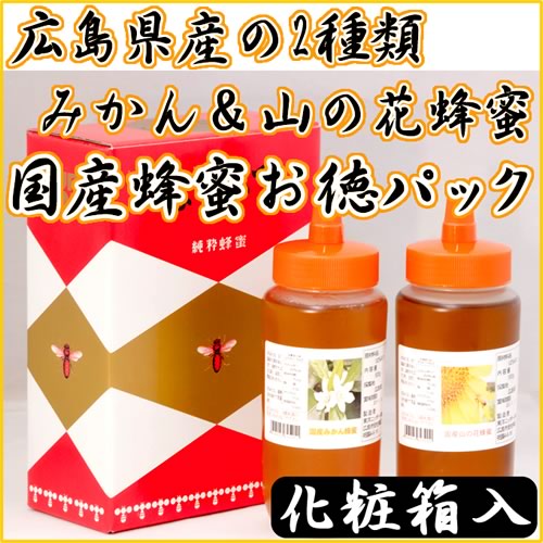 内容量:●広島県産 みかん蜂蜜 500g、広島県産 山の花蜂蜜 500g