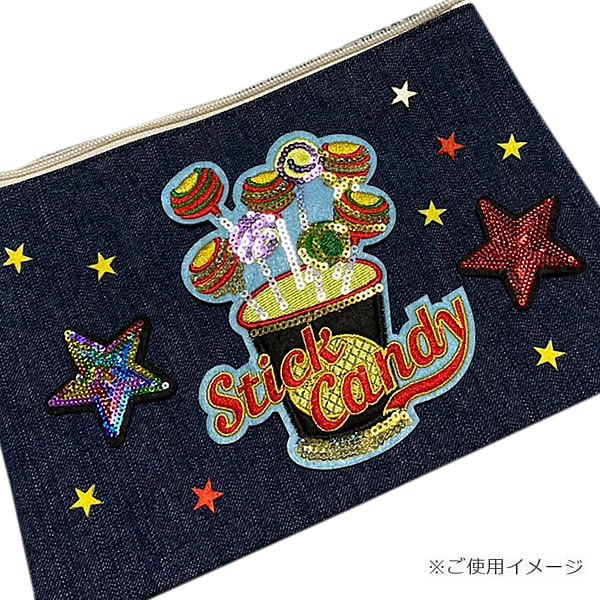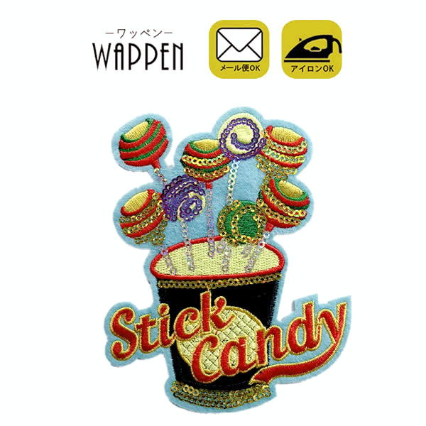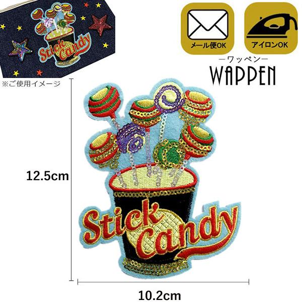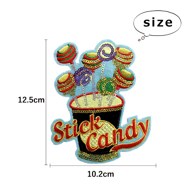 ワッペン スパンコール アイロン接着 縦12.5cm×横10.2cm キャンディー スイーツ 食べ物 stick candy 手芸 アップリケ母の日 プレゼント ギフト