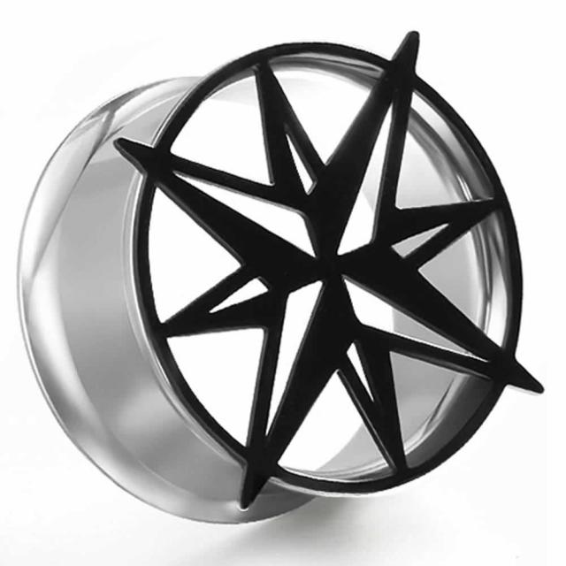 [0G 00G 12mm ダブルフレア型 ボディピアス] ステンレスインナーフレア ボディーピアス /スターライト メンズ レディース 黒色 ブラック 星型 おもしろい 面白い ホール プラグ 男 女 人気 プレゼント 拡張 0ゲージ 00ゲージ 12.0mm ハーフインチ 8mm 10mm 大きい おしゃれ