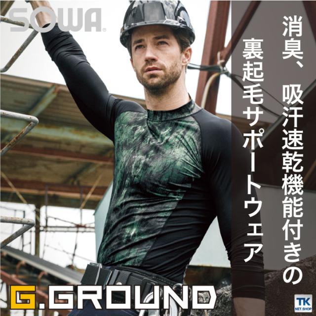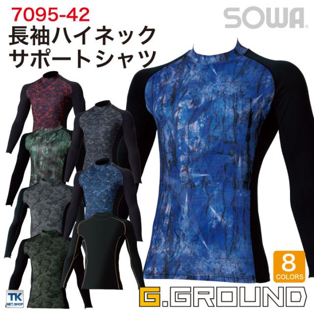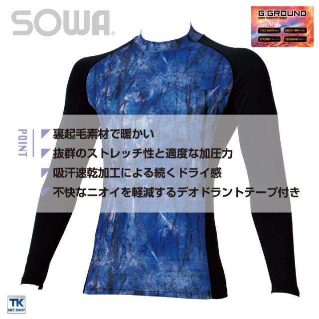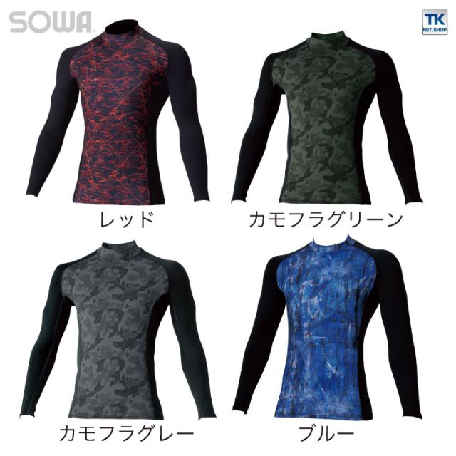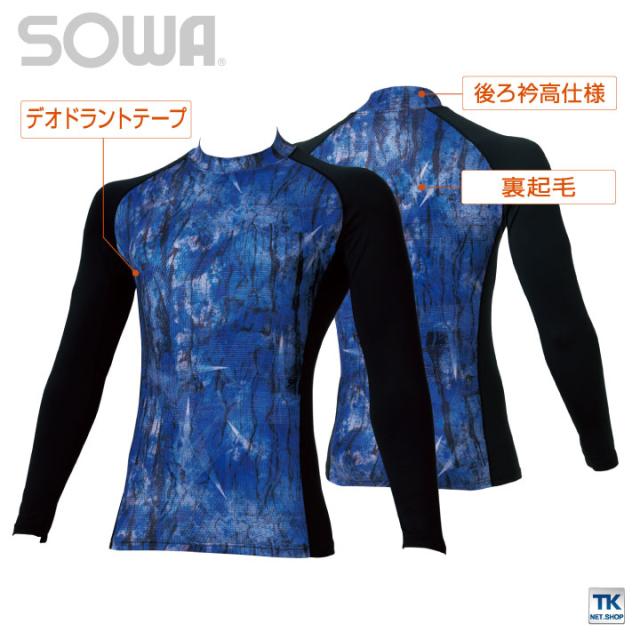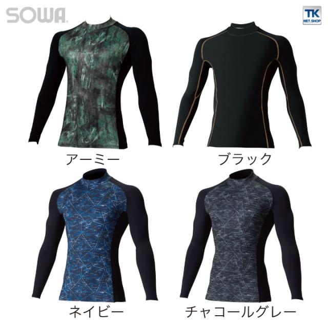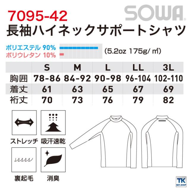 長袖ハイネックサポートシャツ ストレッチ 吸汗速乾 裏起毛 消臭 長袖 インナーシャツ 秋冬 SOWA ネコポス sw-7095-42