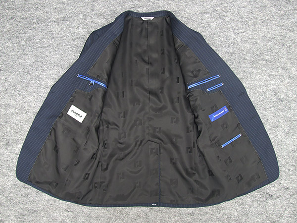 秋冬物 [renoma] レノマ スタイリッシュ2釦シングルスーツ 藍紺/ストライプ [A体][AB体][BB体] メンズ ブランドスーツ REH9317