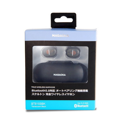 NAGAOKA ナガオカトレーディング Bluetooth5.0対応 オートペアリング機能搭載 スケルトン完全ワイヤレスイヤホン BK BT815SBK(代引不可)