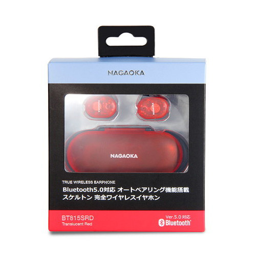 NAGAOKA ナガオカトレーディング Bluetooth5.0対応 オートペアリング機能搭載 スケルトン完全ワイヤレスイヤホン RD BT815SRD(代引不可)