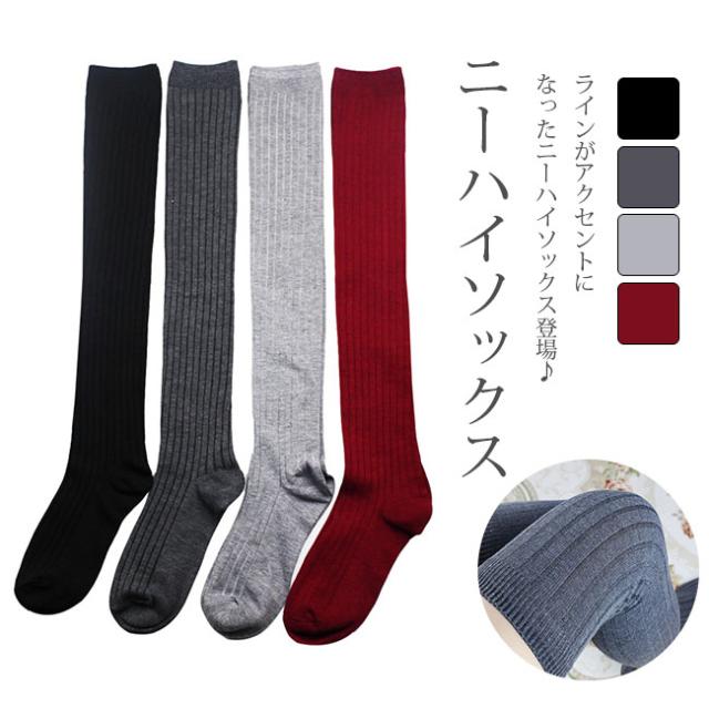 ハイソックス 2枚セット スクールソックス コットンリブのひざ上靴下 レディース オーバーニー ソックス ニーハイソックス 綿混