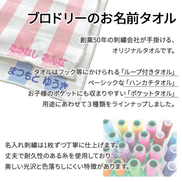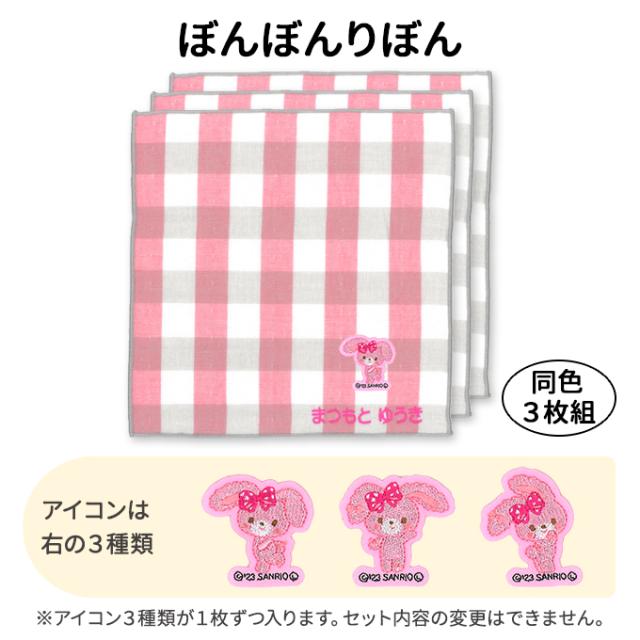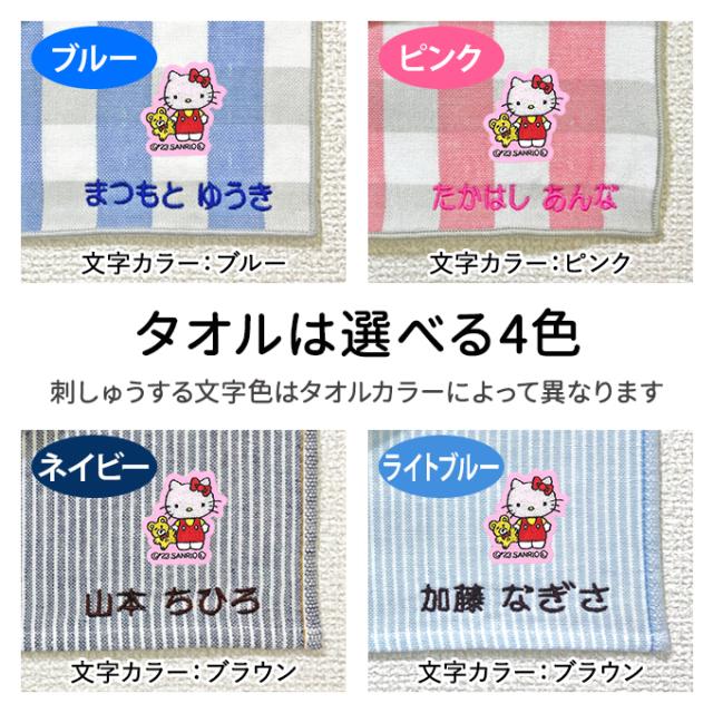 | 商品について | 片面ガーゼ仕様のアイコン付きタオルがリニューアル♪ 表面はコットンガーゼ、裏面はふわふわのパイル地仕様で、やさしい手触りと使い心地のタオルです。 1枚ずつ丁寧にお名前を刺繍してお届けしますので、面倒なお名前つけの必要がありません。 刺繍なのでお洗濯をしてもお名前が消えることなく、長くお使いいただけます。 © 2023 SANRIO CO., LTD. APPROVAL NO. L646393 |