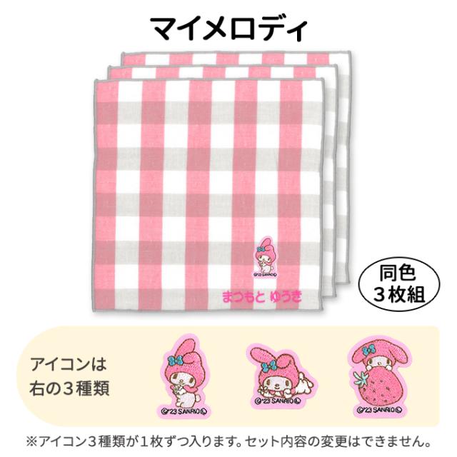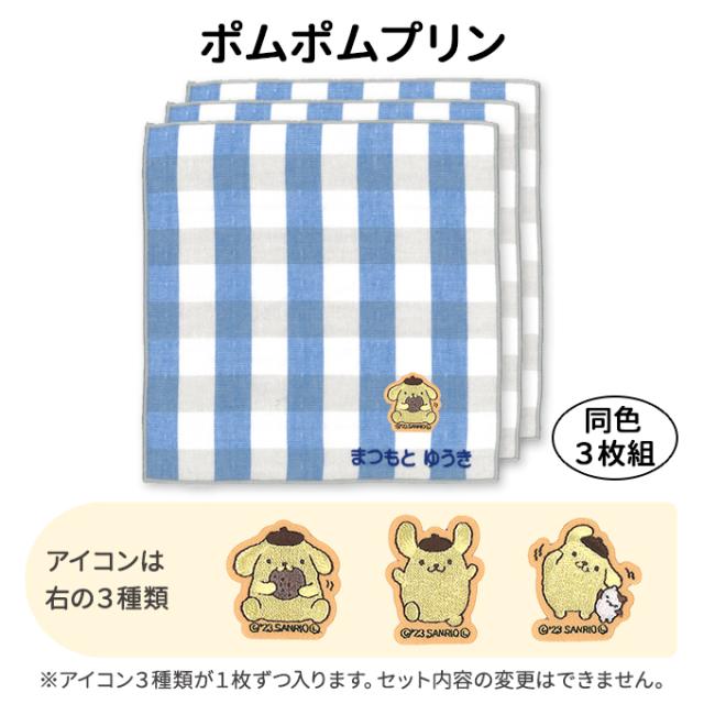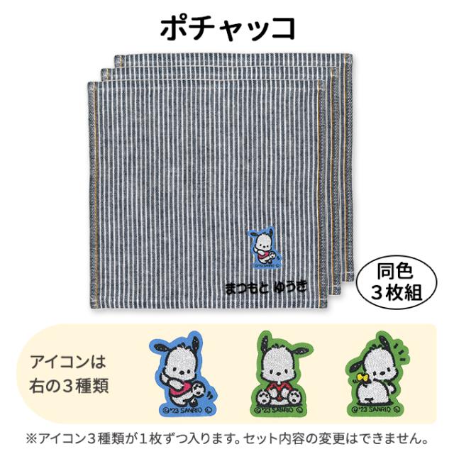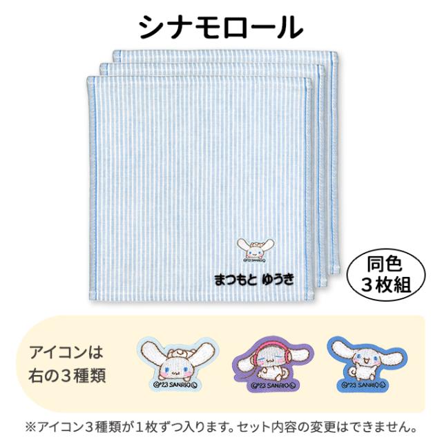 名入れ 刺繍 ハンカチタオル サンリオ 3枚 名前 子供 男の子 女の子 ギフト ハンドタオル キャラクター OR