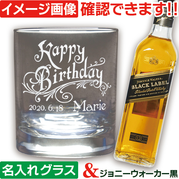 名入れグラス & ウイスキー ジョニーウォーカー黒 (IL) スコッチウイスキー 洋酒 200ml 1本付き 化粧箱入 名入れギフト 記念品 名前入り プレゼント 誕生日 還暦祝い 退職祝い おしゃれ ウイスキーグラス 父の日 母の日