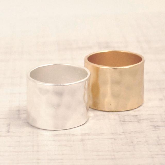 送料無料 幅広エンボスソフトメタルリング 指輪 ワイド アンティーク ビンテージ シルバー ゴールド