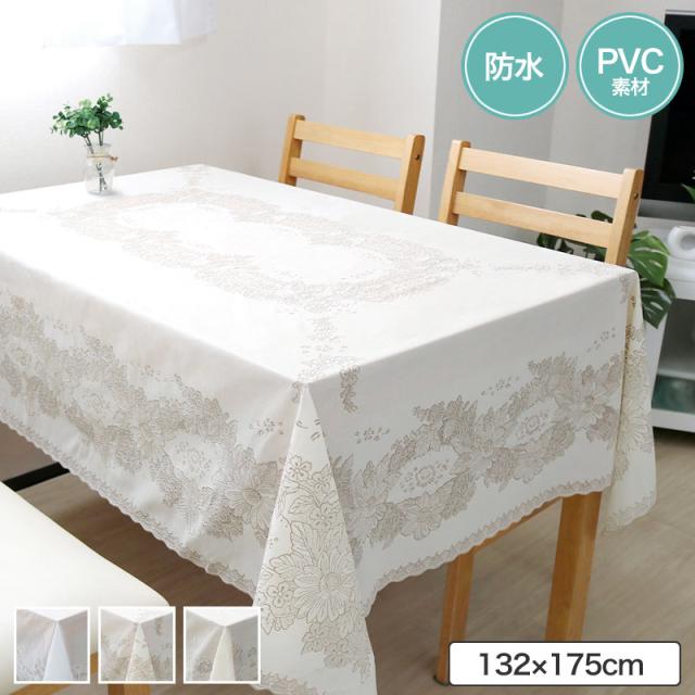 テーブルクロス ビニール レース 既製サイズ 1枚物ビニール クロス 132×175cm 6人掛け 大きい 食卓カバー テーブルカバー ダイニング 座卓 シンプル 家庭用 業務用 撥水 防汚 防キズ 防水 ズレ防止 汚れ防止 白 オシャレ かわいい 北欧 ニューアメリカン エルバ ホワイト